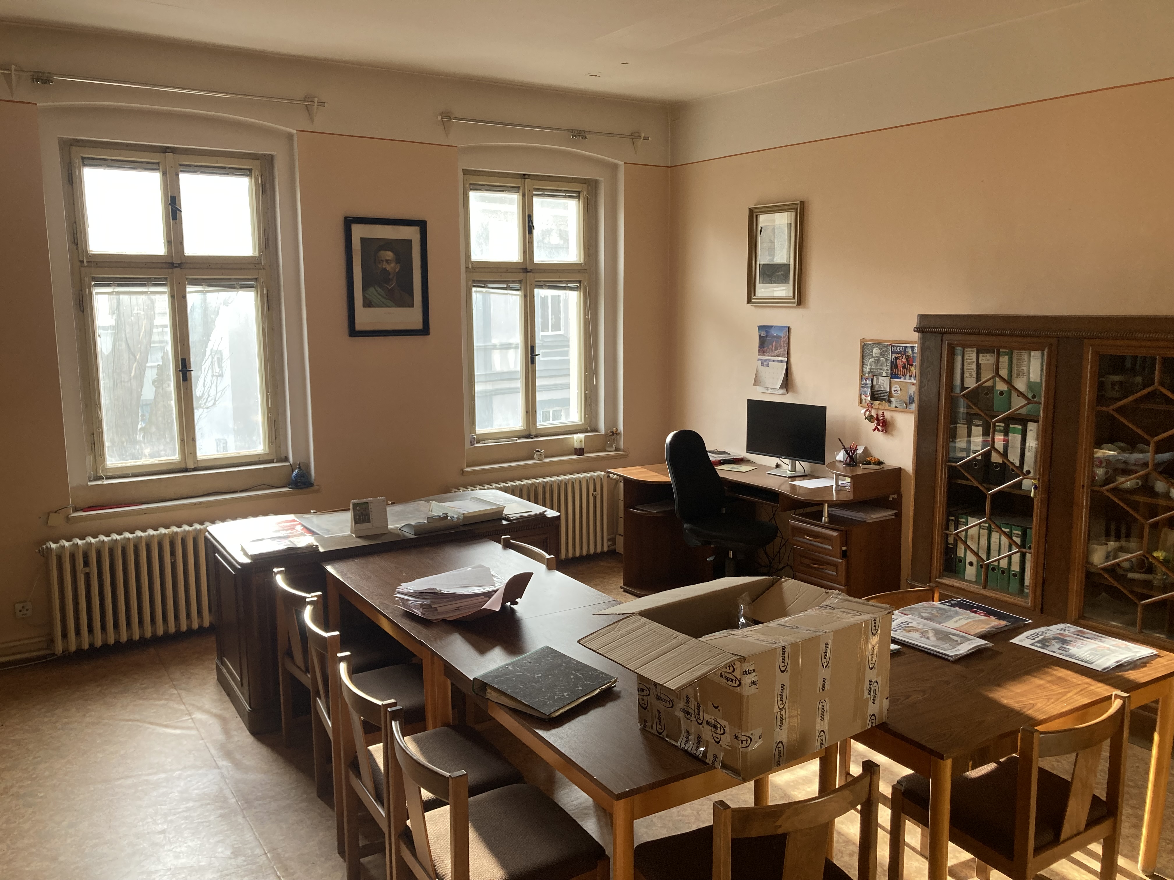 Objekt je částečně podsklepen, lehce navlhlý, převážně z důvodu nedostatečného větrání. Do budovy se vchází společnou prostornou dvojitou chodbou s klenbou rozdělenou prosvětlenými dveřmi. Celý dům je připojen na místní vodovodní řád a kanalizaci. V domě je elektřina a též plyn se samostatnými hodinami pro každé patro. Topná tělesa se nacházejí téměř v každém pokoji domu. - 1. NP se nachází 2 komerční jednotky. Jedna je stále využívána jako Veterinární ordinace. Jedná se zde o jednotku 3 + 1. koupelna a WC je společná s 2. komerční jednotkou 2 + 1. - 2. NP je využíváno jako kancelář: Tělocvičné jednoty Sokol Duchcov. Na tomto patře se nachází 6 pokojů s výhledem na ulici i do dvora, též s toaletou v mezipatře. Tato kancelář se průběhu následujících měsíců přemístí do vedlejšího objektu. Chodba je prostorná se schodištěm, které vede do půdních prostor. - půda by se dala přestavět na další bytové jednotky. Půda je vyklizená a v dobrém stavu. Dům čeká na kompletní rekonstrukci.