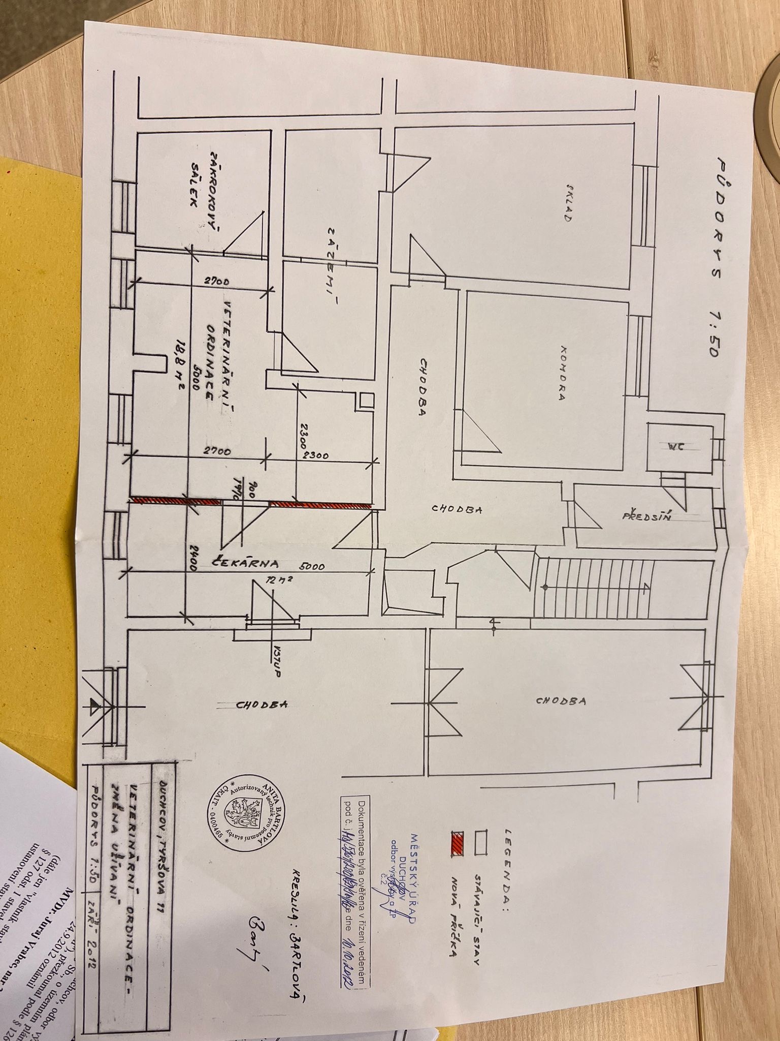 Objekt je částečně podsklepen, lehce navlhlý, převážně z důvodu nedostatečného větrání. Do budovy se vchází společnou prostornou dvojitou chodbou s klenbou rozdělenou prosvětlenými dveřmi. Celý dům je připojen na místní vodovodní řád a kanalizaci. V domě je elektřina a též plyn se samostatnými hodinami pro každé patro. Topná tělesa se nacházejí téměř v každém pokoji domu. - 1. NP se nachází 2 komerční jednotky. Jedna je stále využívána jako Veterinární ordinace. Jedná se zde o jednotku 3 + 1. koupelna a WC je společná s 2. komerční jednotkou 2 + 1. - 2. NP je využíváno jako kancelář: Tělocvičné jednoty Sokol Duchcov. Na tomto patře se nachází 6 pokojů s výhledem na ulici i do dvora, též s toaletou v mezipatře. Tato kancelář se průběhu následujících měsíců přemístí do vedlejšího objektu. Chodba je prostorná se schodištěm, které vede do půdních prostor. - půda by se dala přestavět na další bytové jednotky. Půda je vyklizená a v dobrém stavu. Dům čeká na kompletní rekonstrukci.